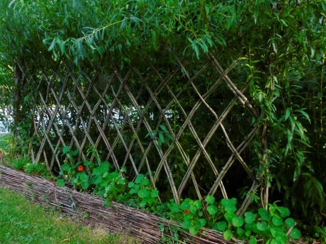 En cours d’apprentissage, j’ai découvert l’architecture végétale, qui consiste à ériger des structures pérennes en saules vivants, qu’il s’agisse de haies rectilignes ou courbes, de dômes, de tipis, de tonnelles ou de tunnels. Cette pratique associe deux disciplines qui me fascinent, soit le jardinage et la vannerie. La plantation se fait très tôt au printemps, en période de dormance, dans une tranchée ameublie d’au moins 30 centimètres de profondeur. Bien qu’elles n’aient pas de racines, les tiges de saule possèdent cette particularité remarquable de s’enraciner facilement quand elles sont plantées dans des conditions optimales. Je les tresse ensuite pour leur donner la forme souhaitée, en les attachant ensemble au moyen de tubulures élastiques qui seront retirées plus tard. Au fil des ans, les tiges forment des troncs de dimensions moyennes qui, bien souvent, se greffent les uns aux autres, ce qui confère à la structure une rigidité et une durabilité exceptionnelles. L’architecture végétale peut être pratiquée par des personnes de tout âge, y compris par les enfants. J’accompagne ceux-ci dans leur découverte et leur apprentissage.